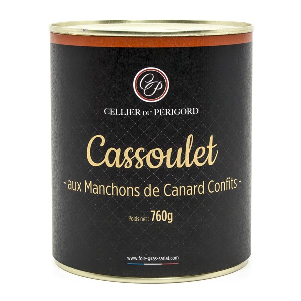 | Ingrédients | Haricots lingots, manchons de canard 13%, saucisse de porc 13%, couenne de porc, bouillon de volaille (eau, sel, dextrose, fécule de maïs, graisse et viande de poulet, saccharose, carbonate de magnésium) graisse d’oie, concentré de tomate, ail, oignon, persil, sel, poivre. Viande : Origine France |